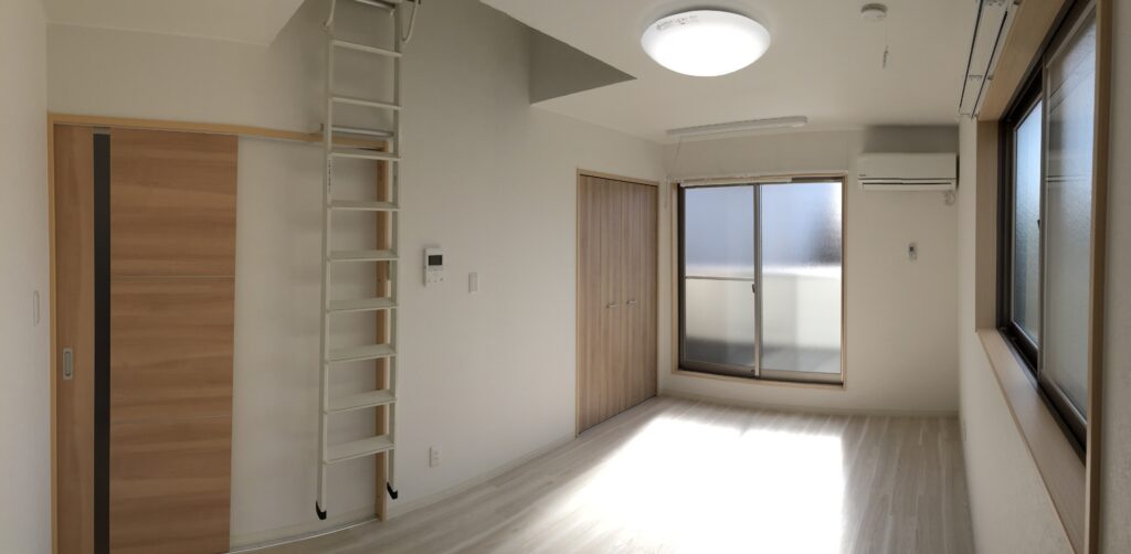 洋室8.1帖+キッチン3.6帖+ロフト3帖の広いお部屋です。学生専用マンション 女性にも安心のお部屋です