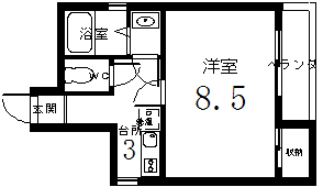 洋室8.5畳 3階 1室 K3畳 3階 1室 |